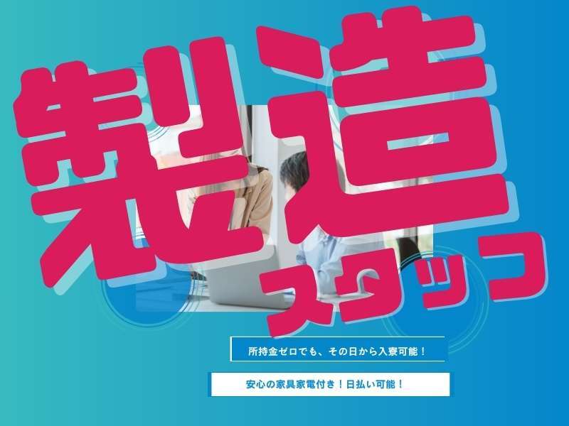 | 応募方法 | 【いつでもどこでも応募OK】 \ご応募から入社までのステップ/ WEB応募 → 面談 → 採否連絡 → 勤務スタート ・不明点や不安なことも丁寧にご案内します。 ・応募から最短で2~3日以内の入社も可能です。 ・住まいが必要な方には寮のご案内も可能です。 【会社所在地】 〒564-0052 大阪府吹田市広芝町10-8 江坂薫友ビル209 |