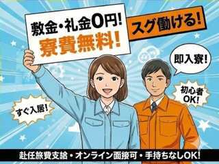 | 応募方法 | 【まずはWEBからご応募ください】 ◇スムーズな選考をお約束◇ 応募 → 面談 → 条件確認 → 入社 ・住まいが必要な方には寮のご案内も可能です。 ・不明点や不安なことも丁寧にご案内します。 ・入社日や配属先もご希望を考慮します。 【会社所在地】 〒564-0052 大阪府吹田市広芝町10-8 江坂薫友ビル209 |