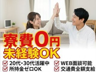 | 応募方法 | 【応募はいつでも簡単】 【流れ】 WEB応募 → 担当より連絡 → 面談 → 入社手続き 入寮が必要な方には住まいの案内も合わせて行います。 応募後、面談の日程調整を行い、条件のご説明をさせていただきます。 スピード対応で、すぐに働きたい方も安心です。 【会社所在地】 〒564-0052 大阪府吹田市広芝町10-8 江坂薫友ビル209 |