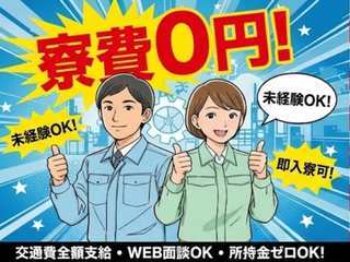 | 応募方法 | 【スマホから簡単エントリー】 <応募後の流れをご連絡> 応募 → 担当連絡 → 面談日調整 → 入社 ・入社日や配属先もご希望を考慮します。 ・住まいが必要な方には寮のご連絡も可能です。 ・ご都合にあわせて面談日時を調整します。 【会社所在地】 〒564-0052 大阪府吹田市広芝町10-8 江坂薫友ビル209 |